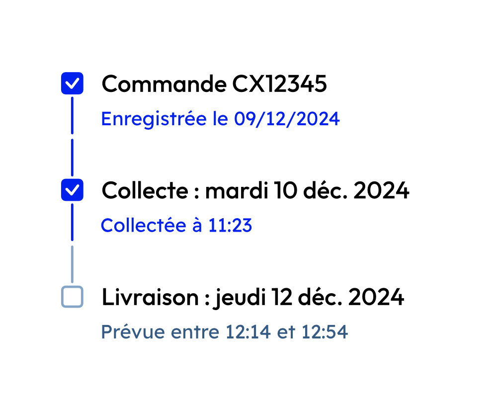 Suivez chaque étape, de la collecte à la livraison, en toute simplicité. Recevez des notifications pour ne manquer aucune étape du service.